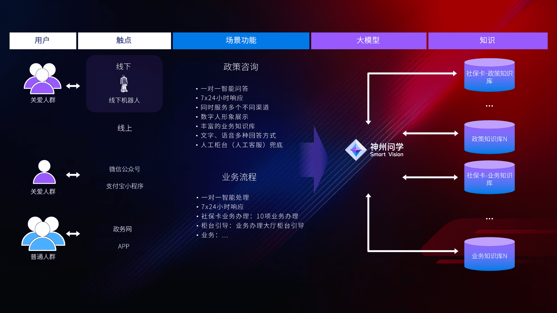 • 线上线下全覆盖:线上提供微信公众号、、、、支付宝小程序、、、政务网、、app多种渠道,,,,与线下机器人形成完整服务体系。。。。